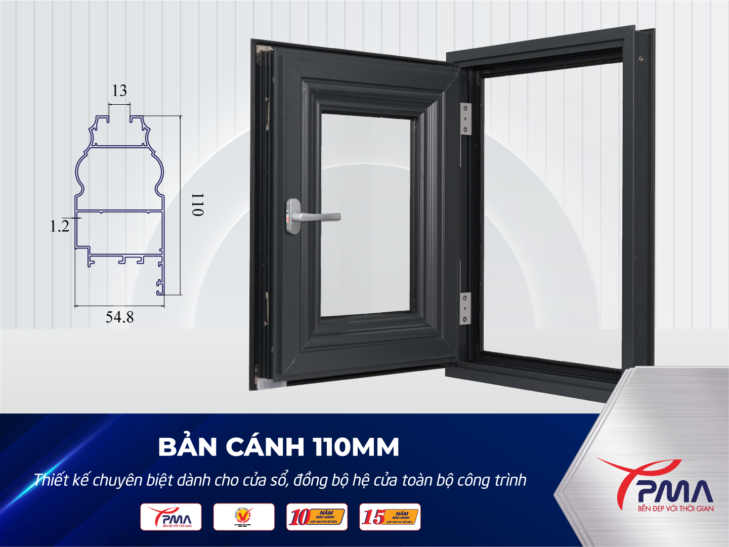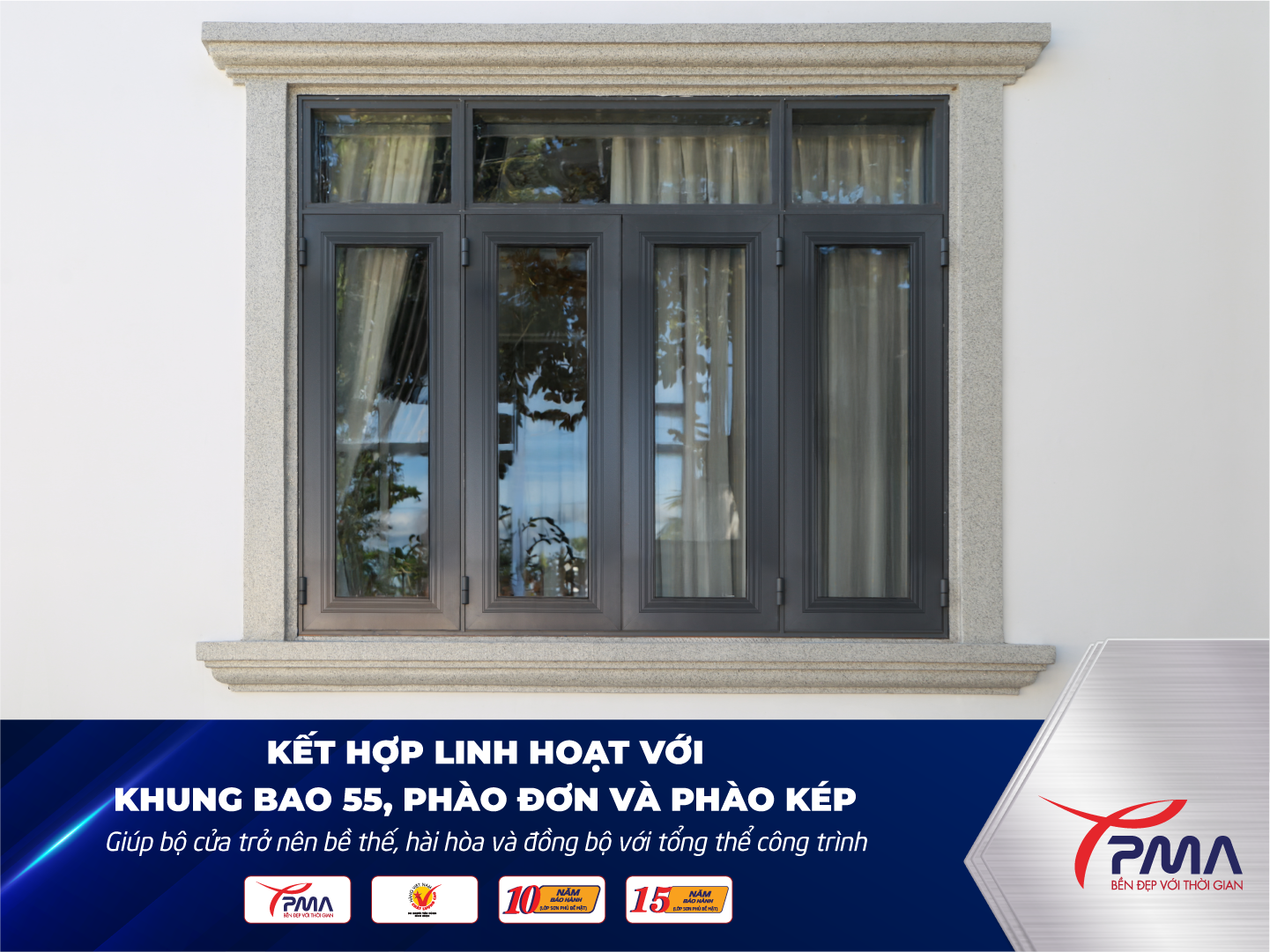 Nhà máy Nhôm PMA sẵn sàng cung cấp sản phẩm cánh liền phào cửa sổ Nhôm PMA Platinum 110mm cùng đầy đủ thông tin kỹ thuật, mẫu thực tế và giải pháp thi công phù hợp cho từng loại công trình.