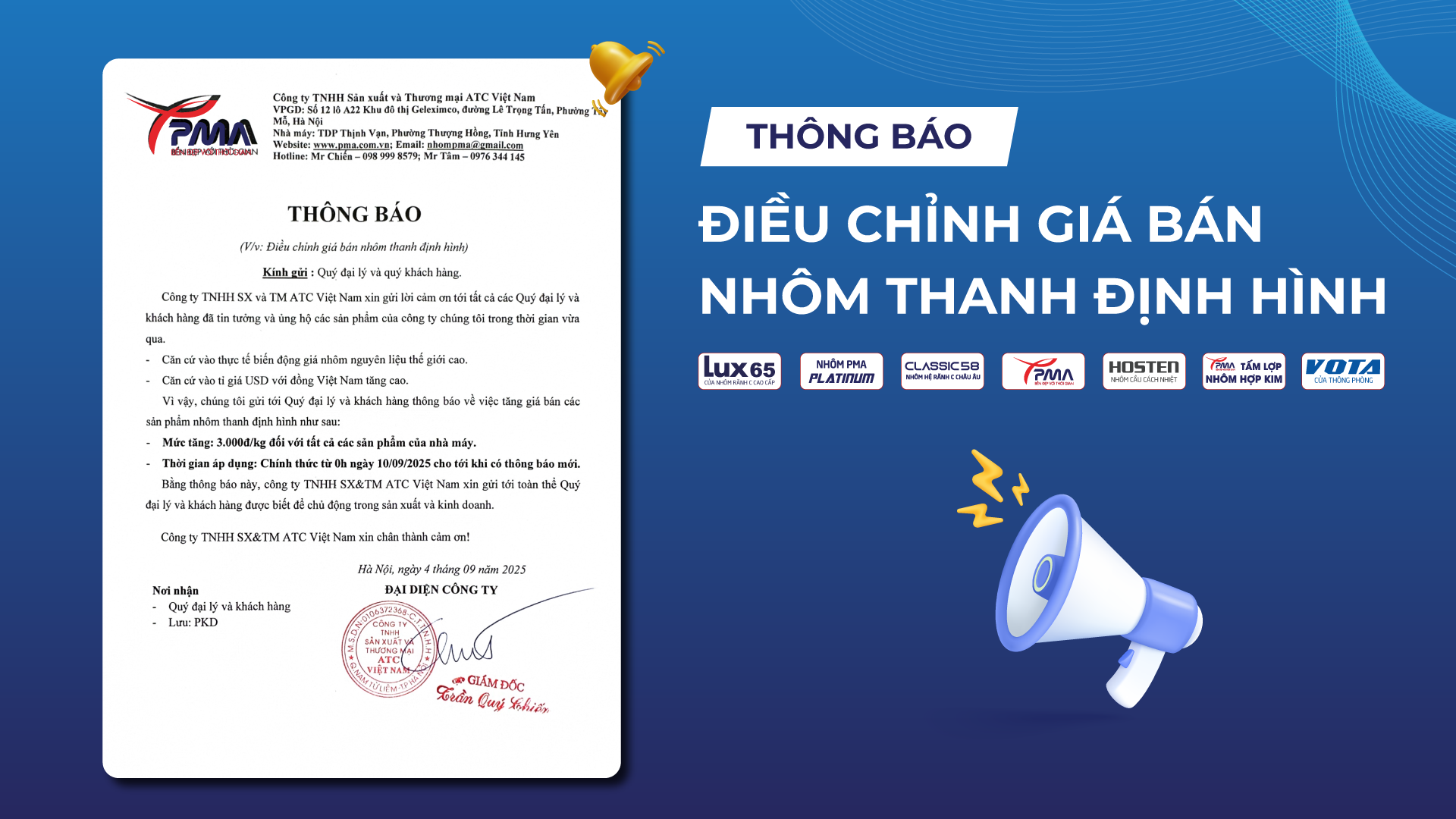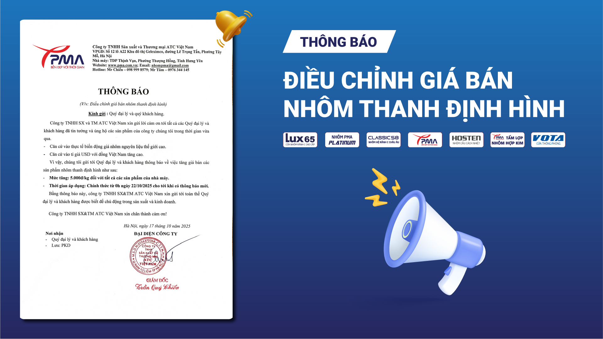 Kính gửi: Quý Đại lý và Quý Khách hàng, Công ty TNHH Sản xuất &...