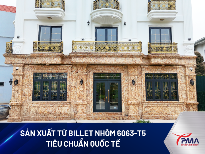 Cửa sổ Nhôm PMA Platinum được sản xuất từ billet nhôm 6063-T5 đạt chuẩn quốc tế, loại vật liệu nổi tiếng trong ngành xây dựng và công nghiệp nhờ khả năng chịu lực, độ cứng vững và khả năng chống ăn mòn cao. Với đặc tính nhẹ nhưng chắc chắn, nhôm 6063-T5 giúp bộ cửa giữ form ổn định theo thời gian, không cong vênh và hạn chế tối đa biến dạng khi chịu tác động thời tiết.