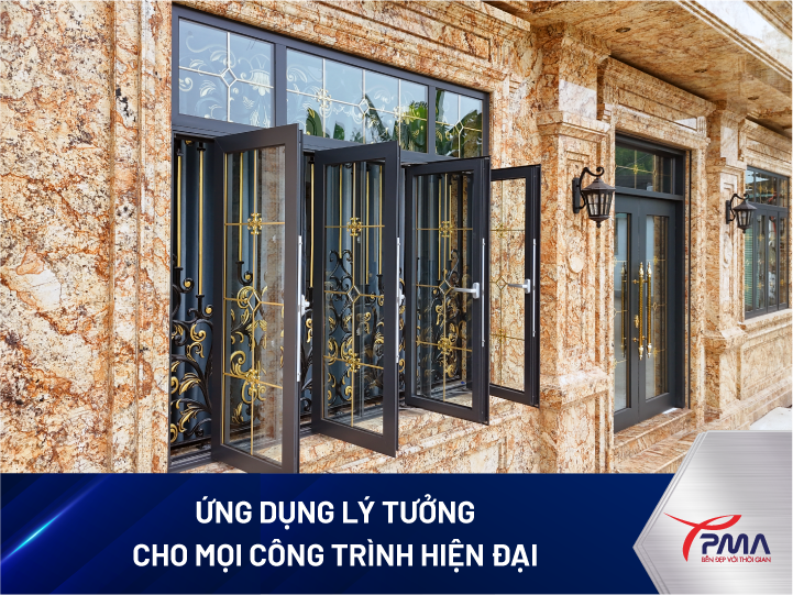 Trong các dự án cao cấp, nhôm PMA bản cánh phẳng không gân còn được sử dụng đồng bộ cho cả cửa sổ lẫn cửa đi. Đây là xu hướng phổ biến trong các công trình theo phong cách hiện đại, hướng đến sự tinh giản và sự đồng nhất trong thiết kế ngoại thất.