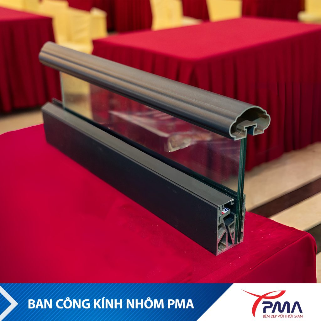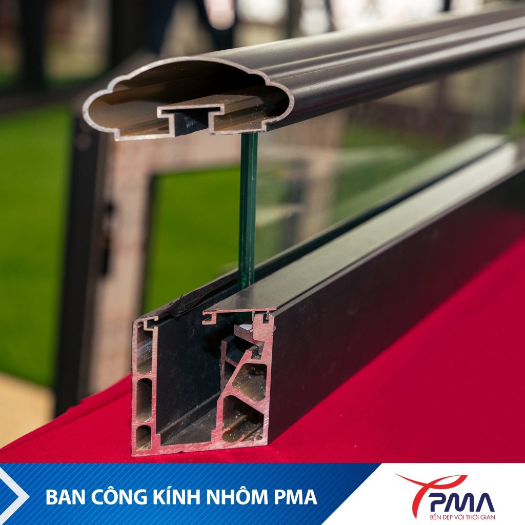 – Tay vịn: cho ban công kính nhôm PMA thường sử dụng các thanh profile nhôm PMA cao cấp, chống xước, chống mài mòn, không phai màu, chống chịu mọi tác động khắc nghiệt của thời tiết.