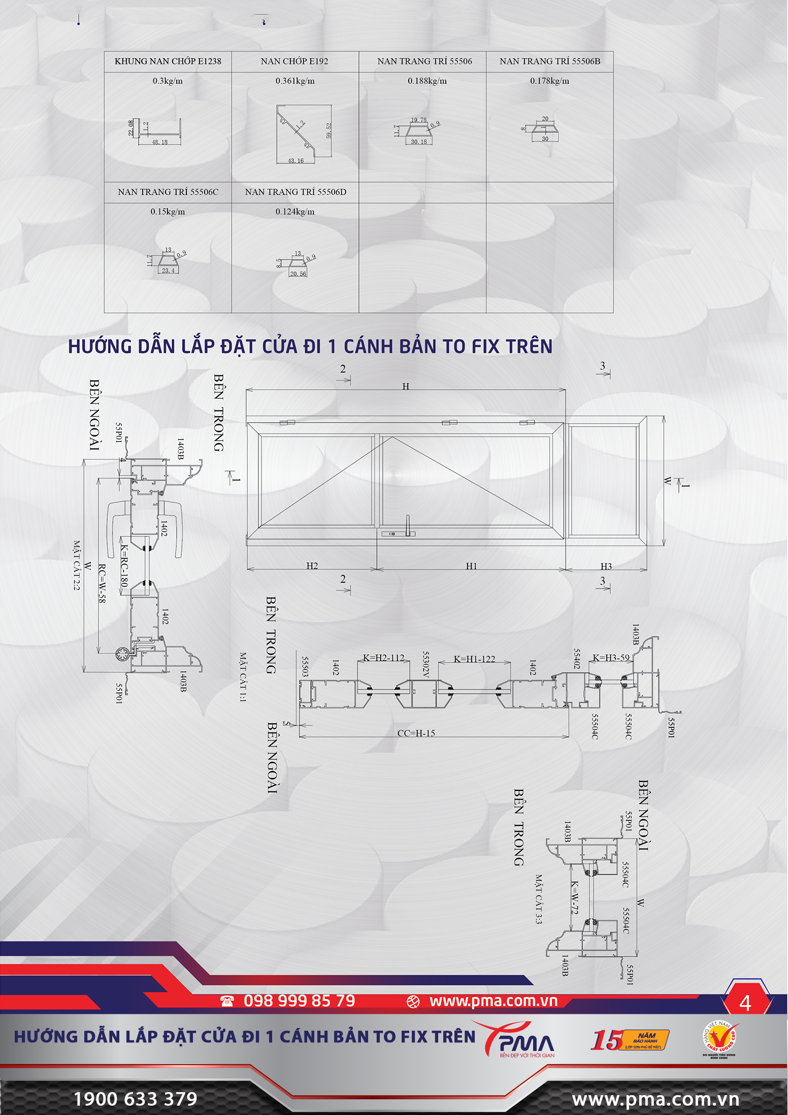 Với những tính năng và đặc điểm nổi bật kể trên, Cửa đi mở quay PMA hệ 55 Vát cạnh sẽ là điểm nhấn cho mọi công trình mà quý khách hàng lựa chọn. Mọi chi tiết thắc mắc, xin vui lòng liên hệ đến: