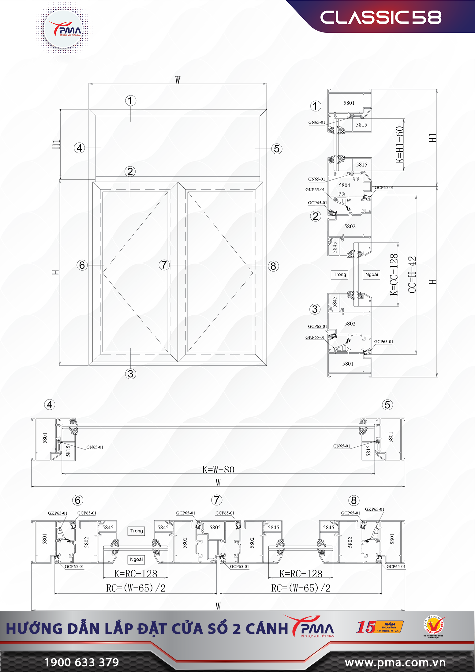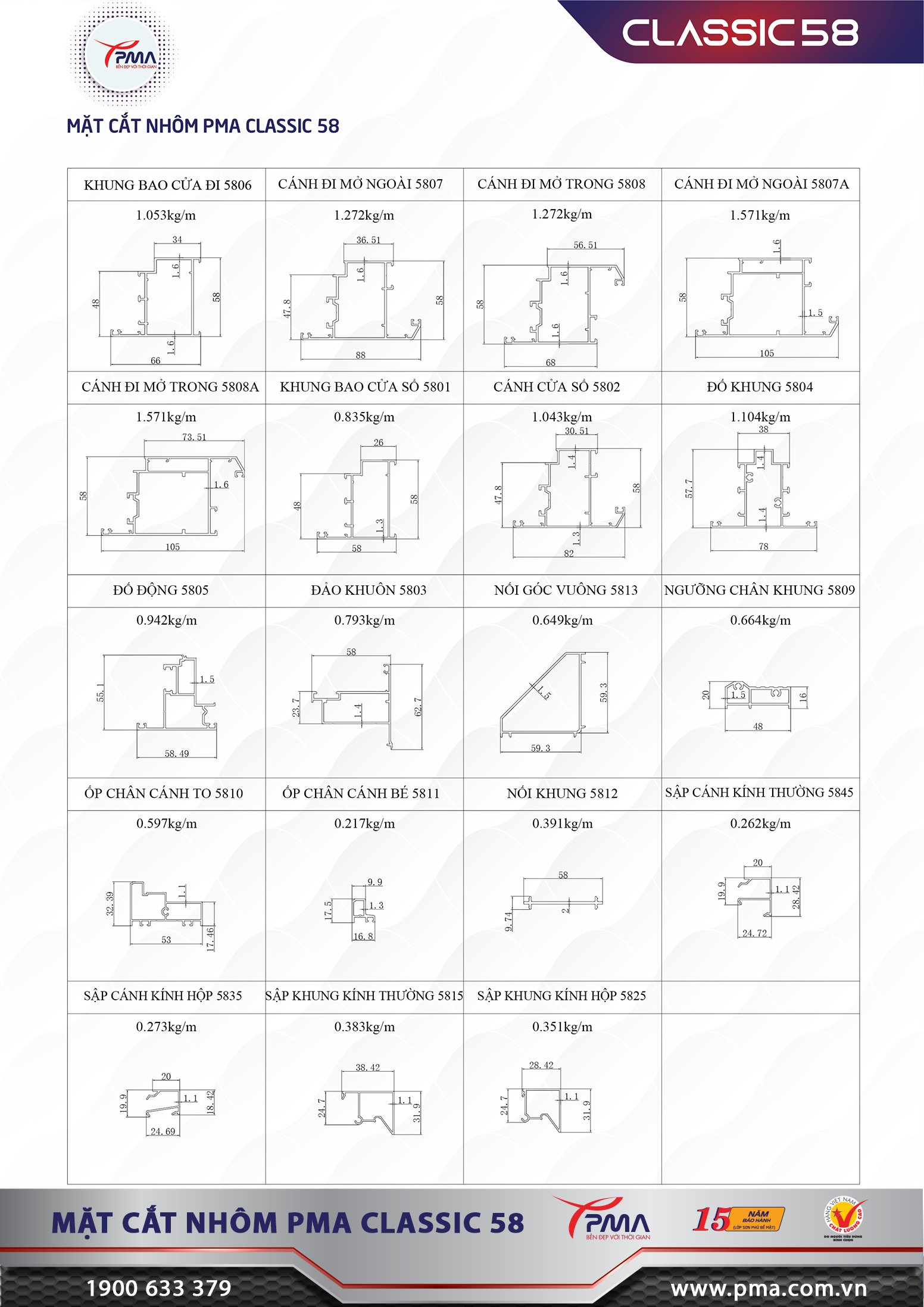 Nhôm hệ rãnh C Châu âu PMA Classic 58, dễ dàng thi công, tối đa được thời gian lắp đặt đặc biệt là phần lắp đặt bản lề và tay cài hết sức dễ dàng.