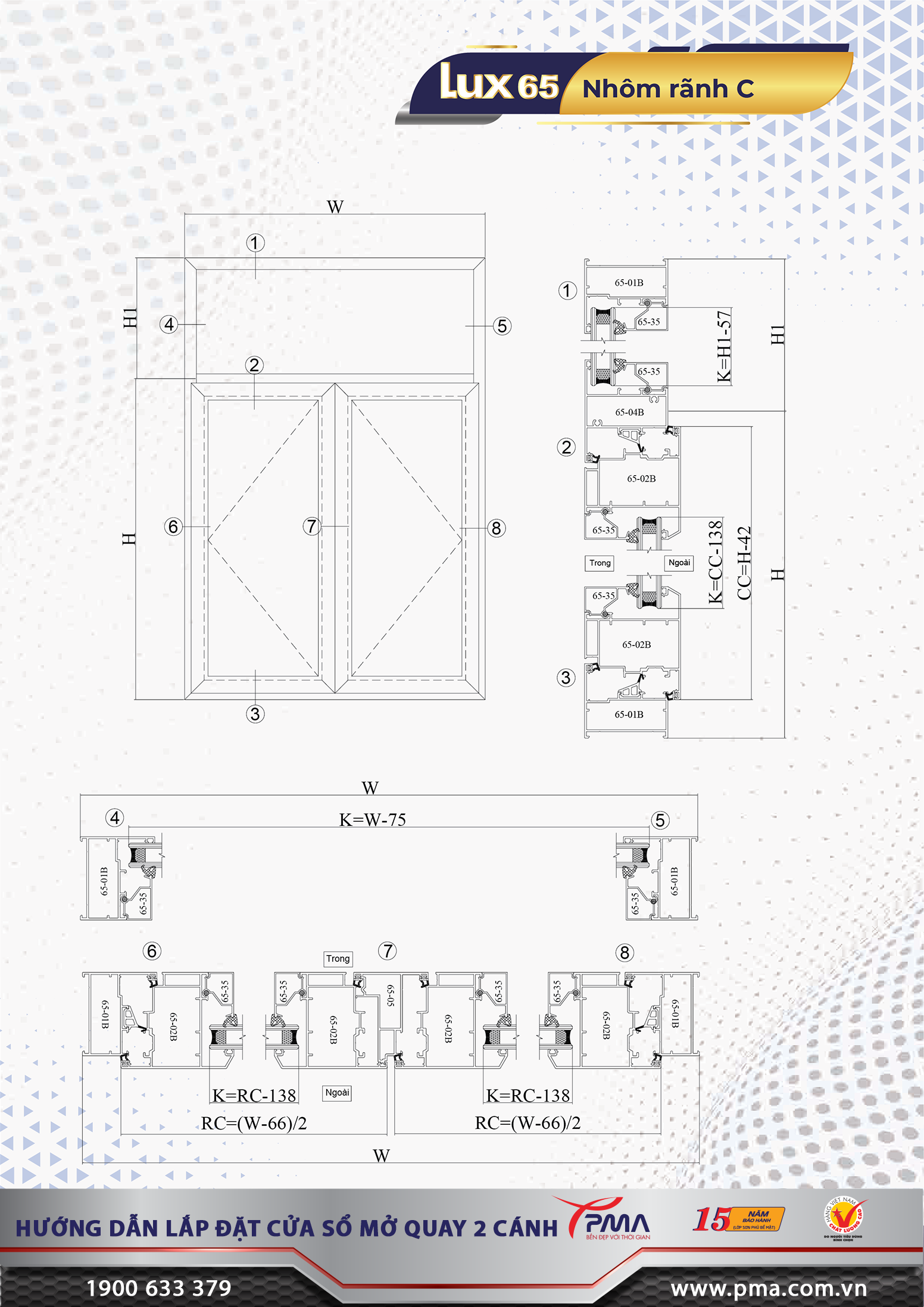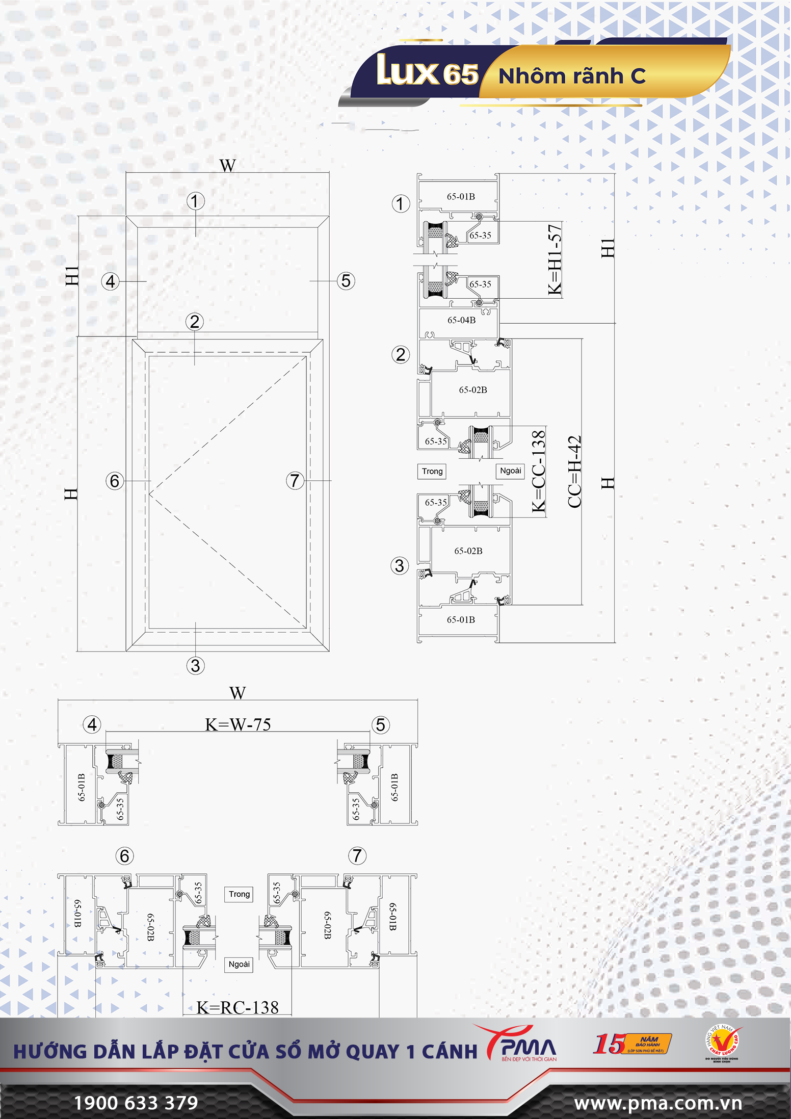 Với nhiều ưu điểm vượt trội, dòng cửa sổ mở quay PMA hệ Lux65 rãnh C tiêu chuẩn châu Âu đáp ứng đầy đủ mọi tiêu chí khắt khe nhất. Để biết thêm về sản phẩm, quý khách xin vui lòng liên hệ đến: