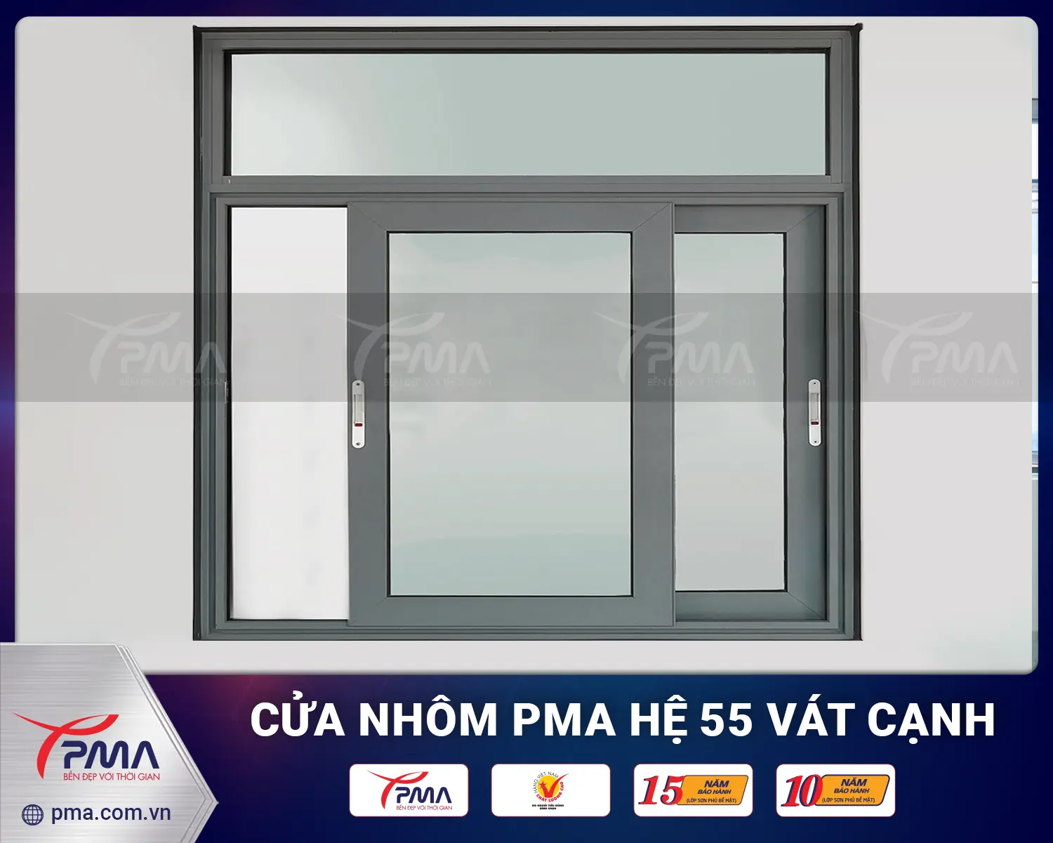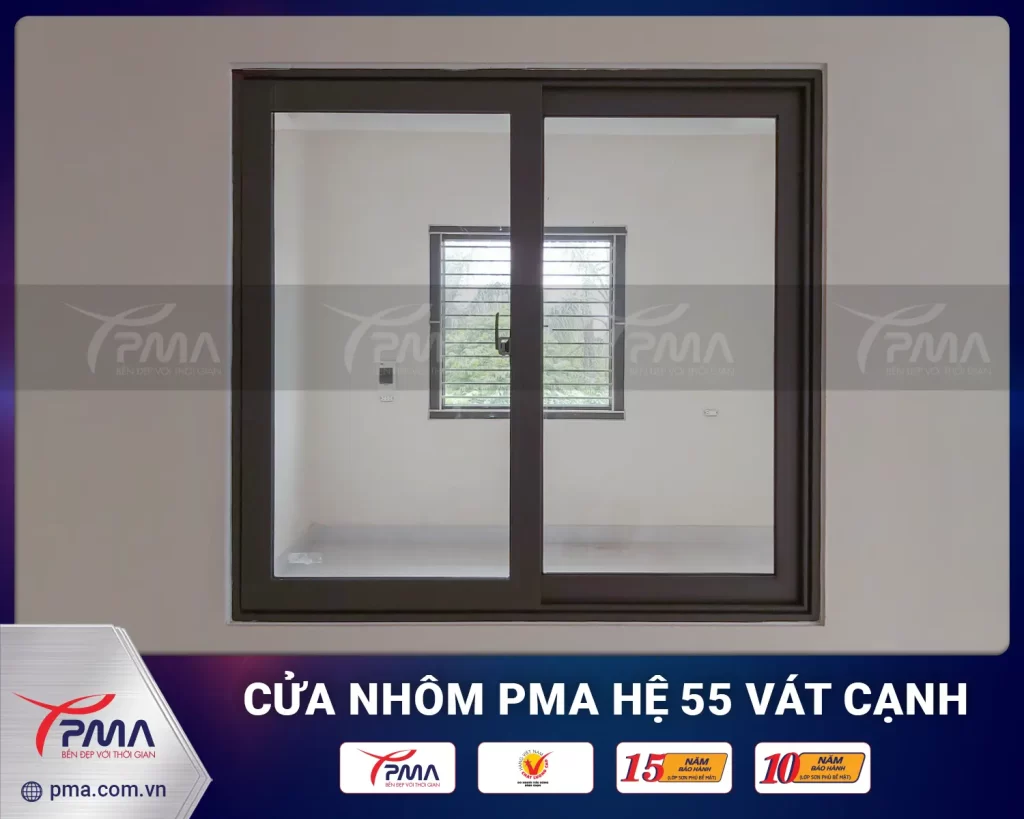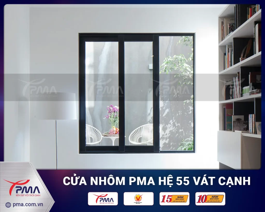 Cửa sổ trượt PMA hệ 55 Vát cạnh có thiết kế hiện đại thông minh, sử dụng các thanh profile nhôm PMA chất lượng cao.