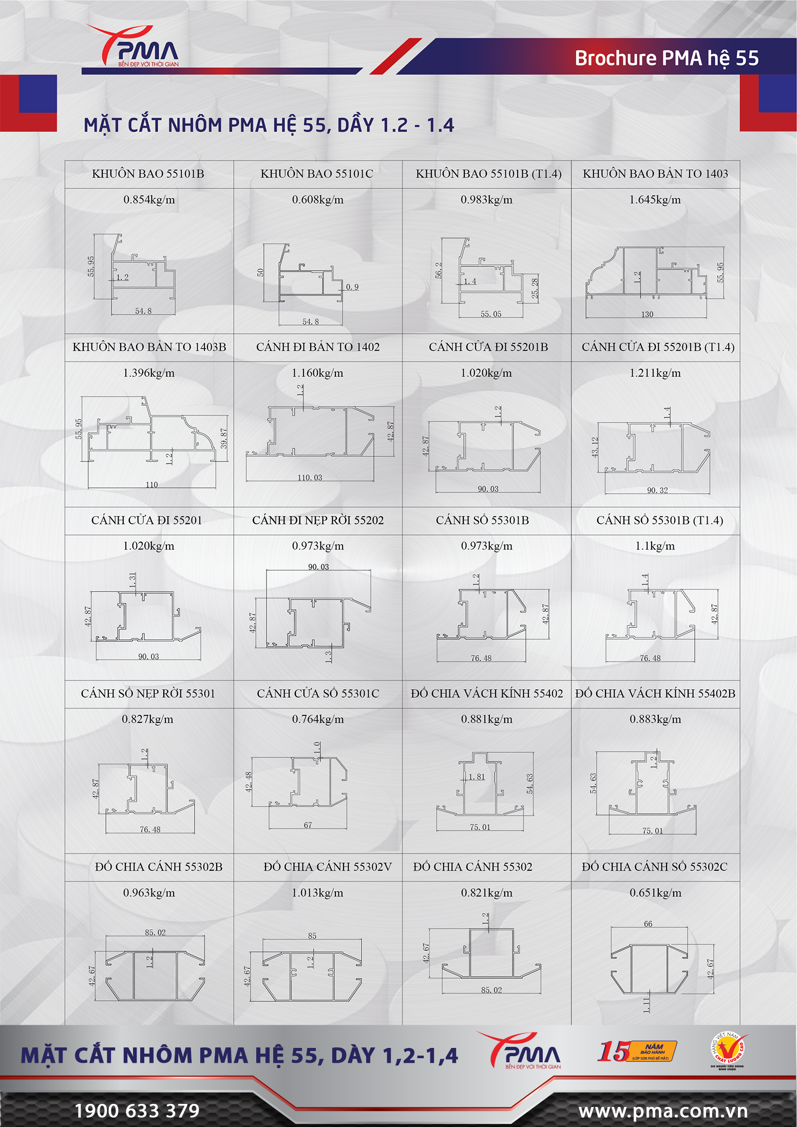 Nhà máy Nhôm PMA tự hào là đơn vị tiên phong trong lĩnh vực nhôm thanh định hình, đặc biệt với hệ cửa sổ mở trượt PMA hệ 55 Vát cạnh sẽ mang tất cả những ưu điểm vượt trội tới tay quý khách hàng. Để biết thêm chi tiết, xin vui lòng liên hệ đến: