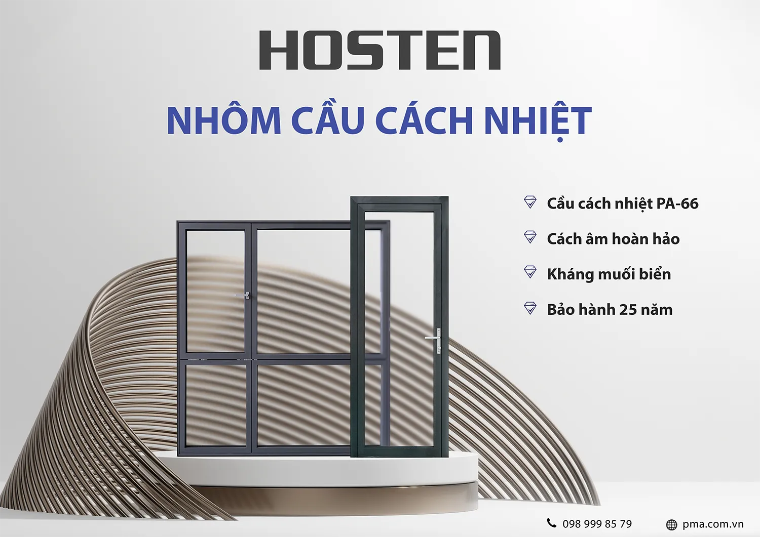 Nhôm cầu cách nhiệt HOSTEN với 2 hệ C70 và C120 sản xuất và lắp đặt các hệ cửa: Cửa đi mở quay, cửa sổ mở quay, cửa sổ mở trượt, đặc biệt với hệ C120 là giải pháp lắp đặt cửa trượt nâng tôn cho vẻ đẹp sang trọng, hiện đại của công trình.