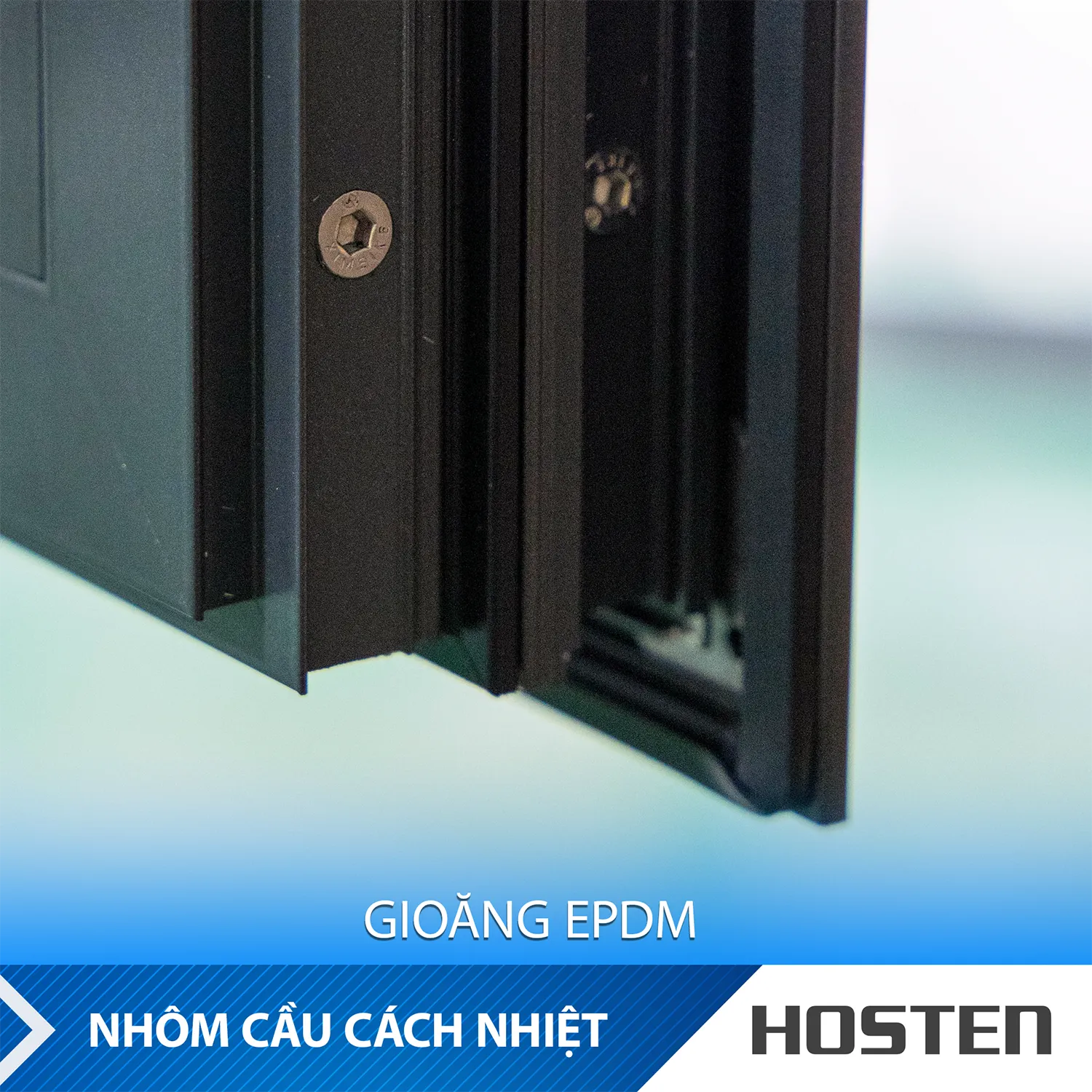Cửa nhôm cầu cách nhiệt HOSTEN sử dụng hệ thống gioăng EPDM kết hợp kính hộp tiết kiệm năng lượng, khả năng cách âm cực tốt; lên tới ~40dB, chống bức xạ, tia UV. Đem lại không gian sống yên tĩnh, trong lành, thoải mái cho mỗi ngôi nhà.
