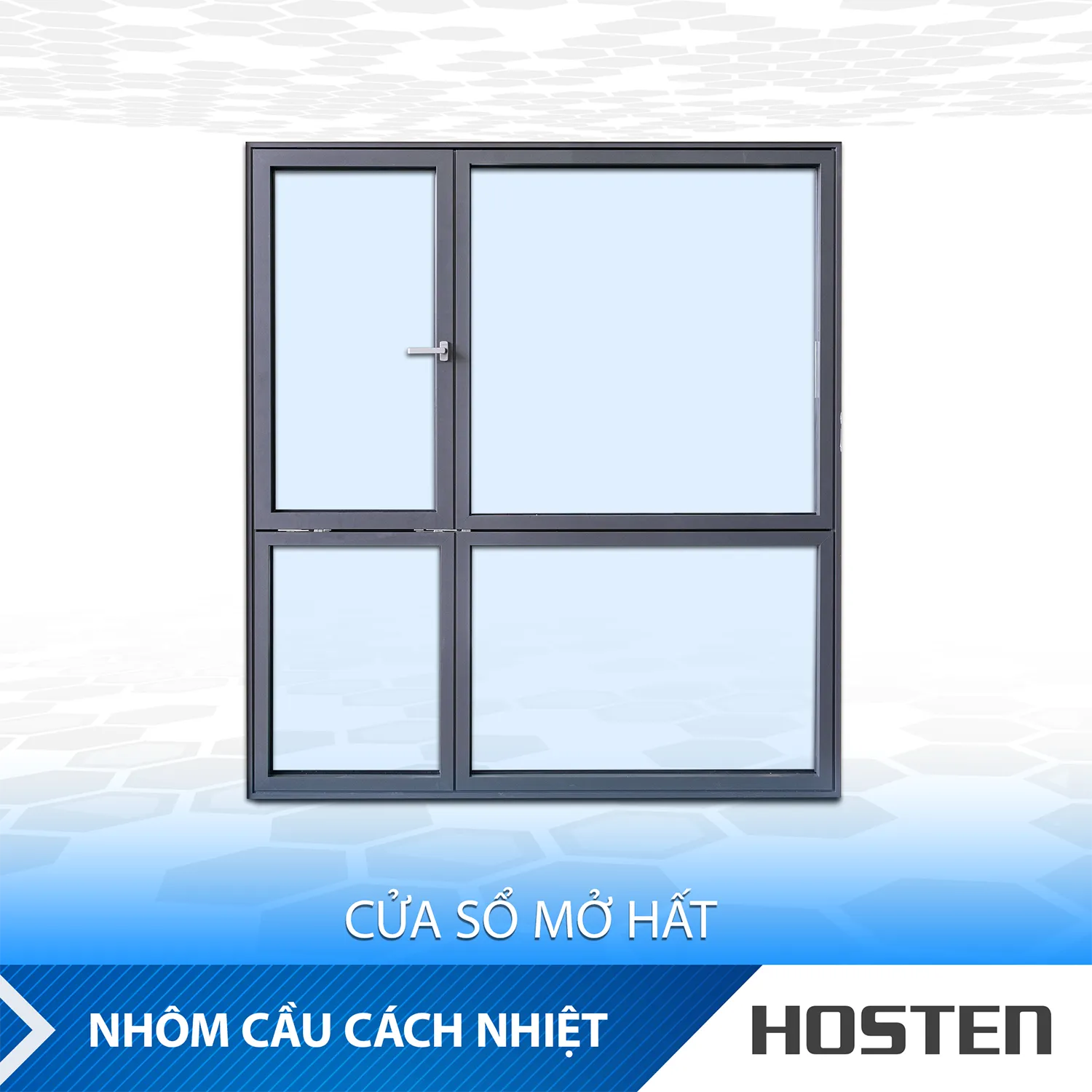 Thanh profile nhômcầu cách nhiệt HOSTEN có kết cấu nhiều khoang rỗng với gân tăng độ cứng, gioăng ép kính có thiết kế chân dài tạo thành 3 khoang rỗng, 3 tầng gioăng EPDM kết hợp với kính hộp giúp sản phẩm có tải trọng nhẹ, độ kín khít, độ bền cao, chịu lực va đập lớn, tiết kiệm điện năng.